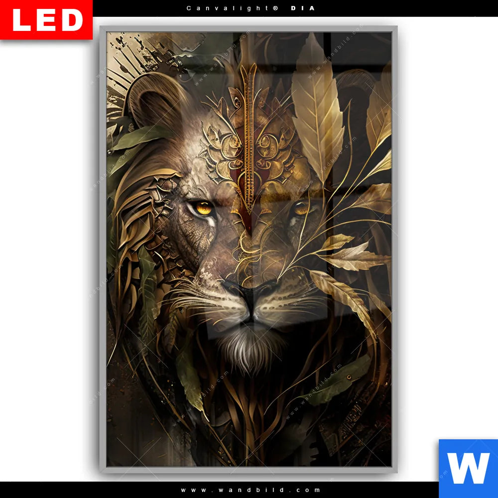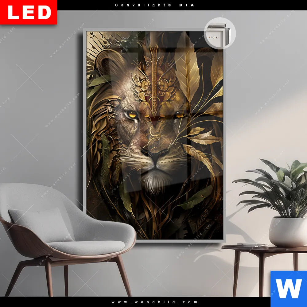 Canvalight® DIA Leuchtbild | Löwenkopf mit Krone | Hochformat