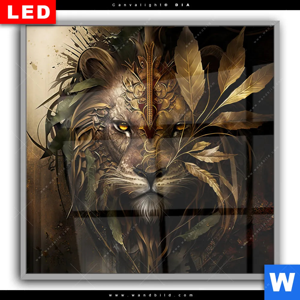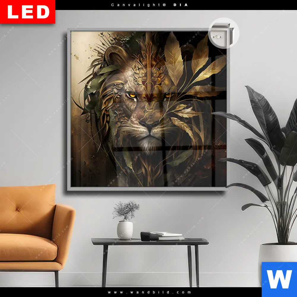 Canvalight® DIA Leuchtbild | Löwenkopf mit Krone | Quadrat