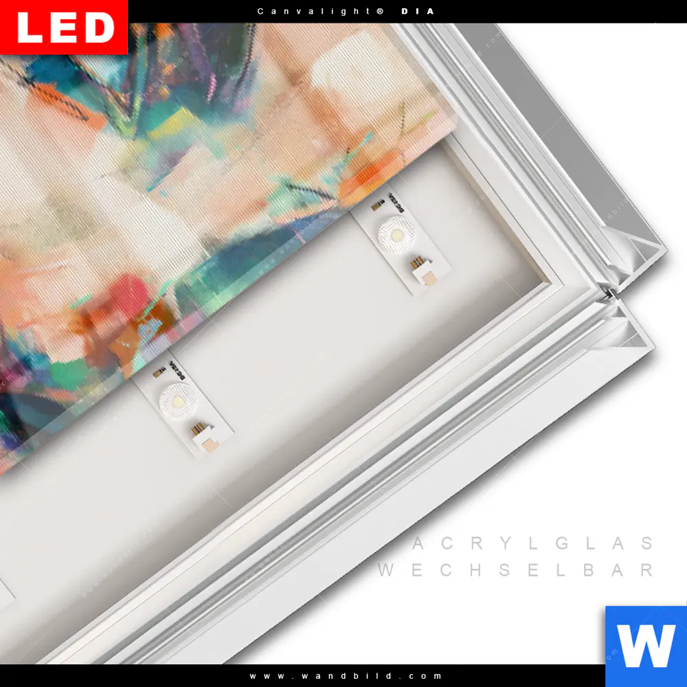 LED-Glasbild mit austauschbarem Acrylglas-Druck (Wechselbild)