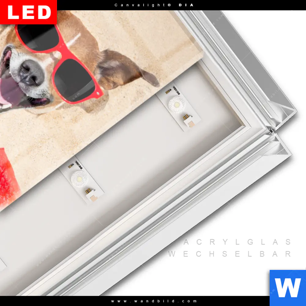 LED-Glasbild mit austauschbarem Acrylglas-Druck (Wechselbild)
