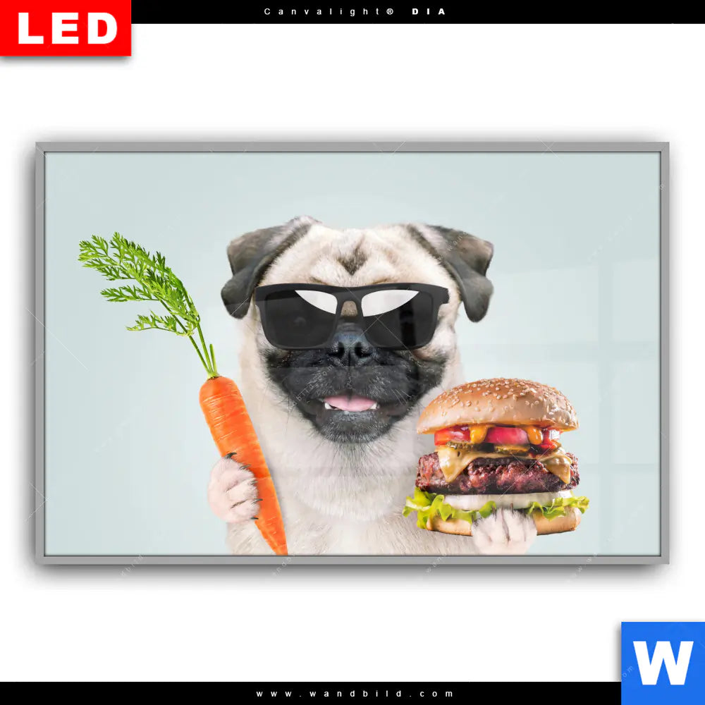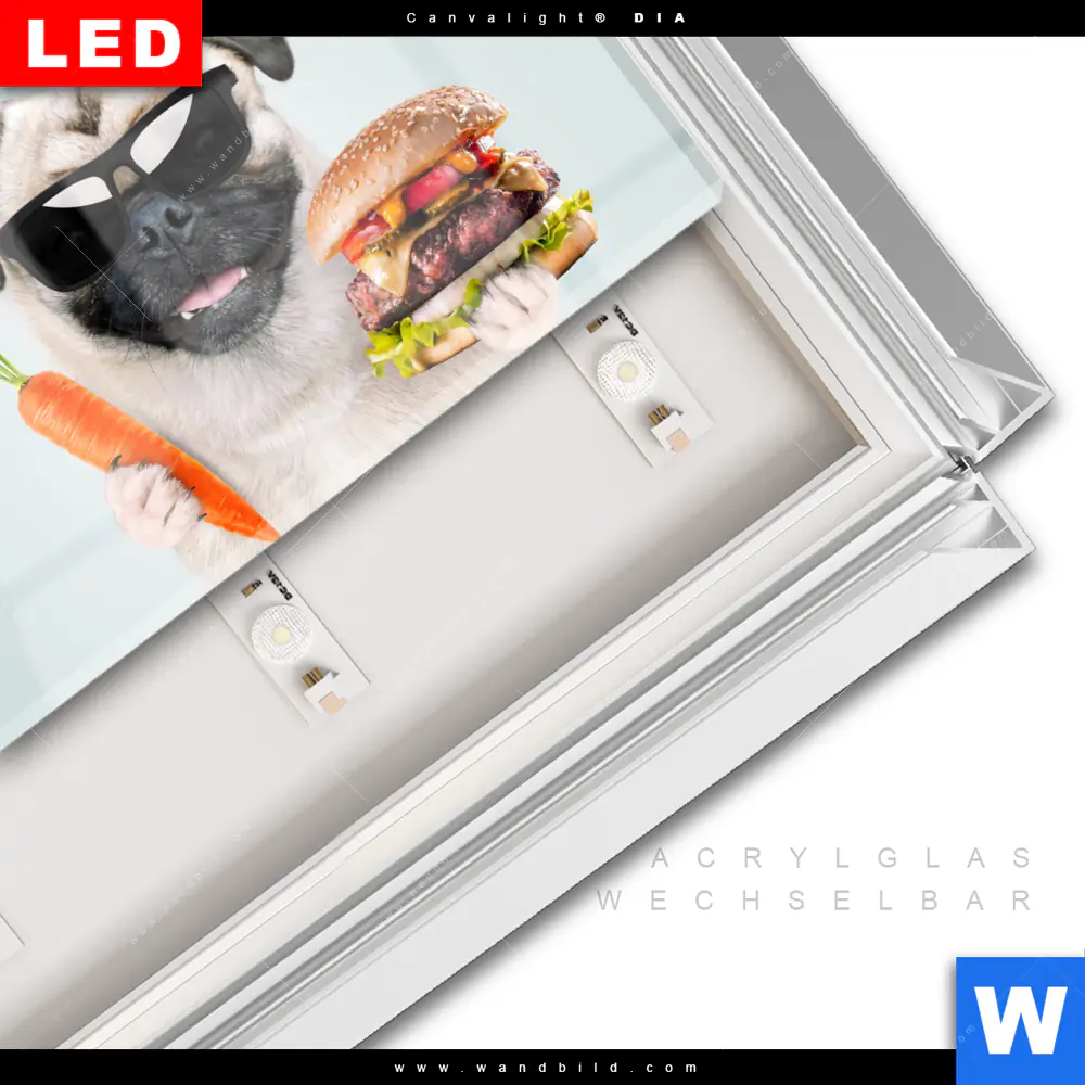 Canvalight® DIA Leuchtbild | Lustiger Hund mit Burger | Querformat