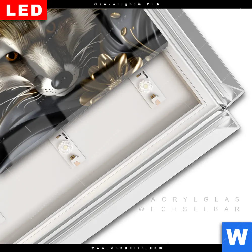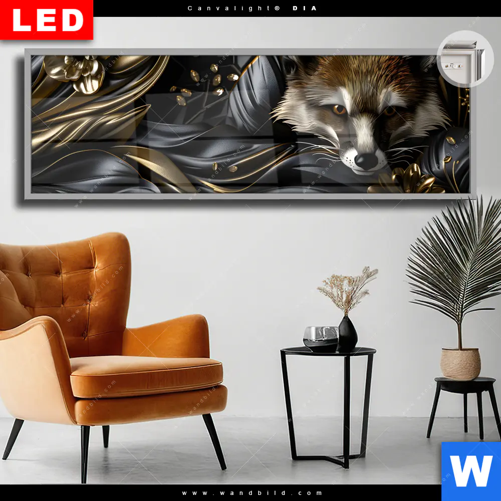 Canvalight® DIA Leuchtbild | Luxuriöser Fuchs mit Blumen | Panorama
