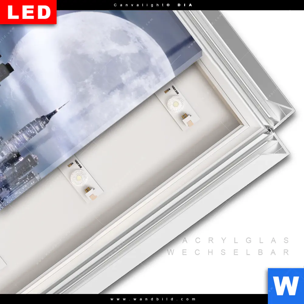 LED-Glasbild mit austauschbarem Acrylglas-Druck (Wechselbild)
