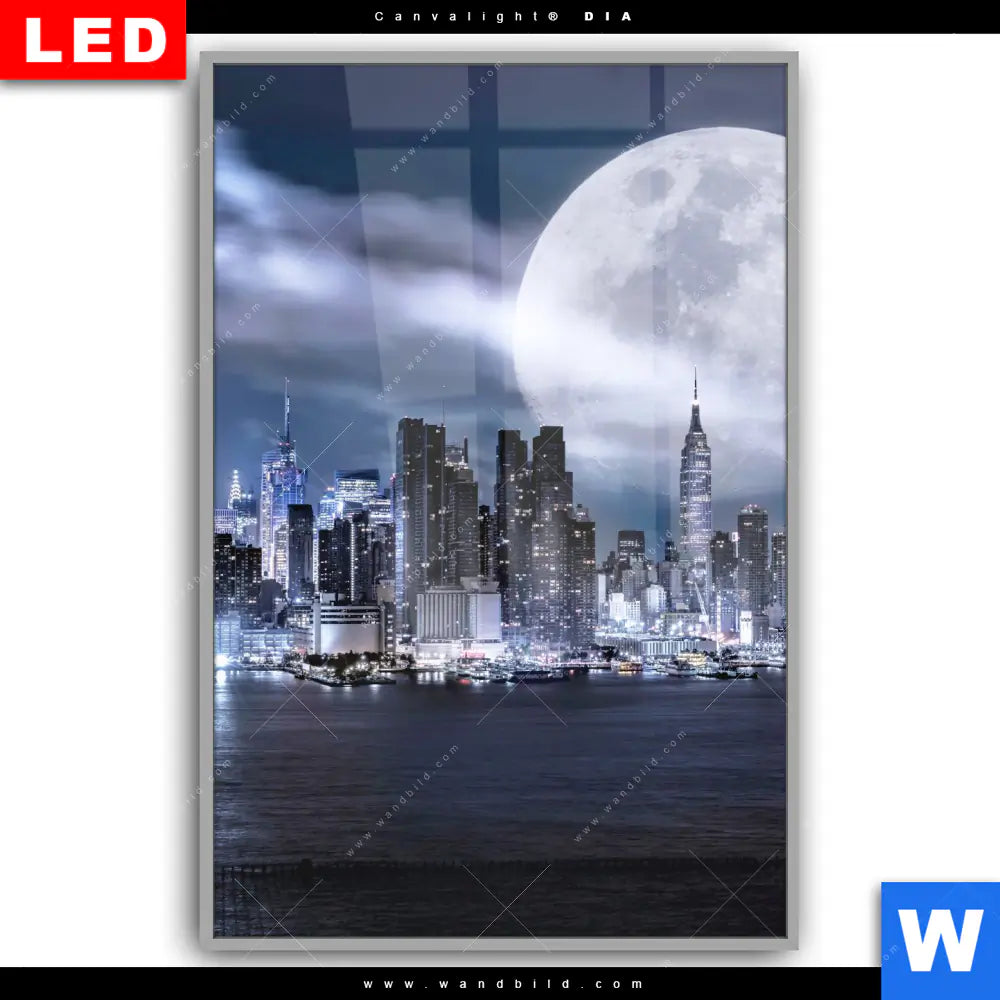 Canvalight® DIA Leuchtbild | Manhattan - Giganten im Silberlicht | Hochformat