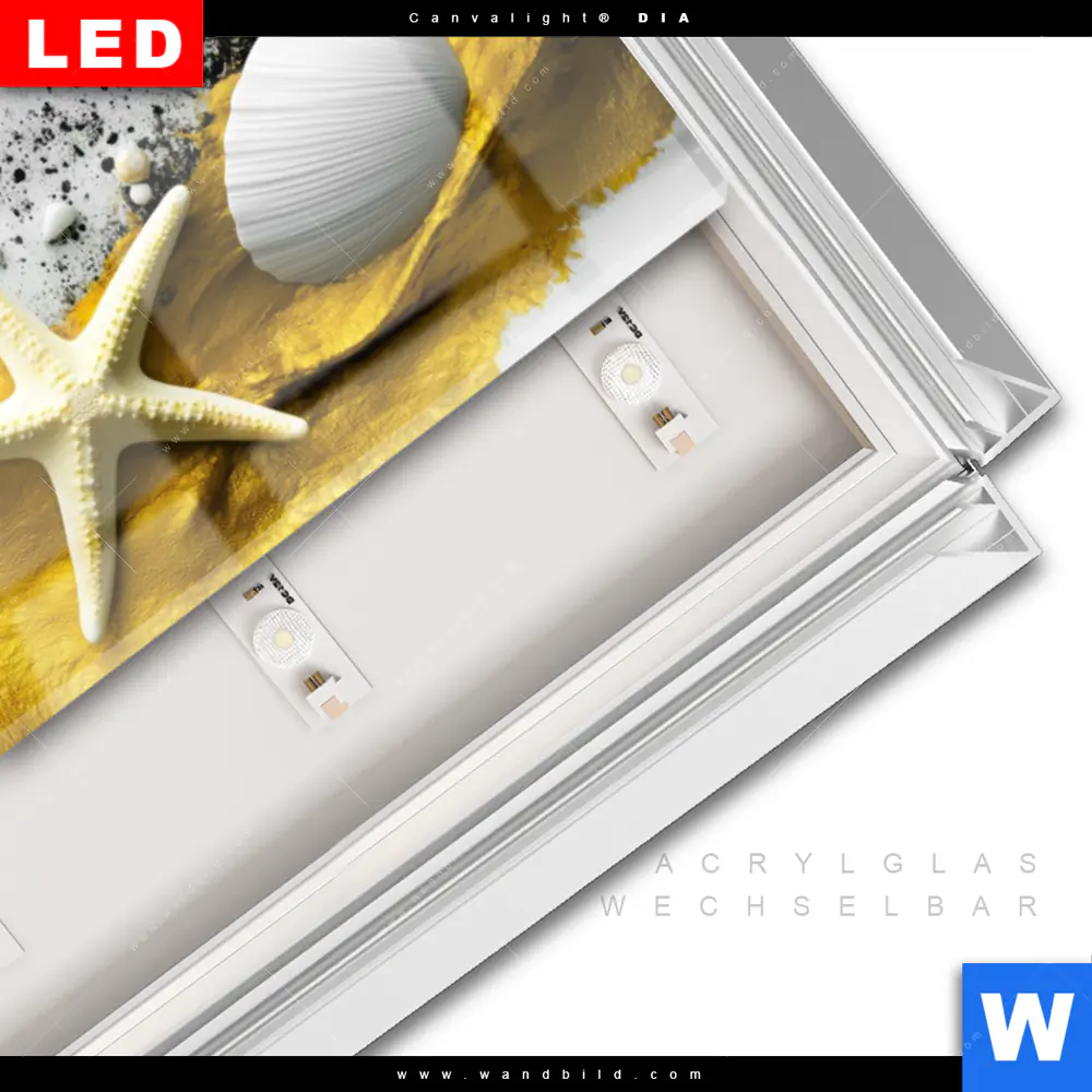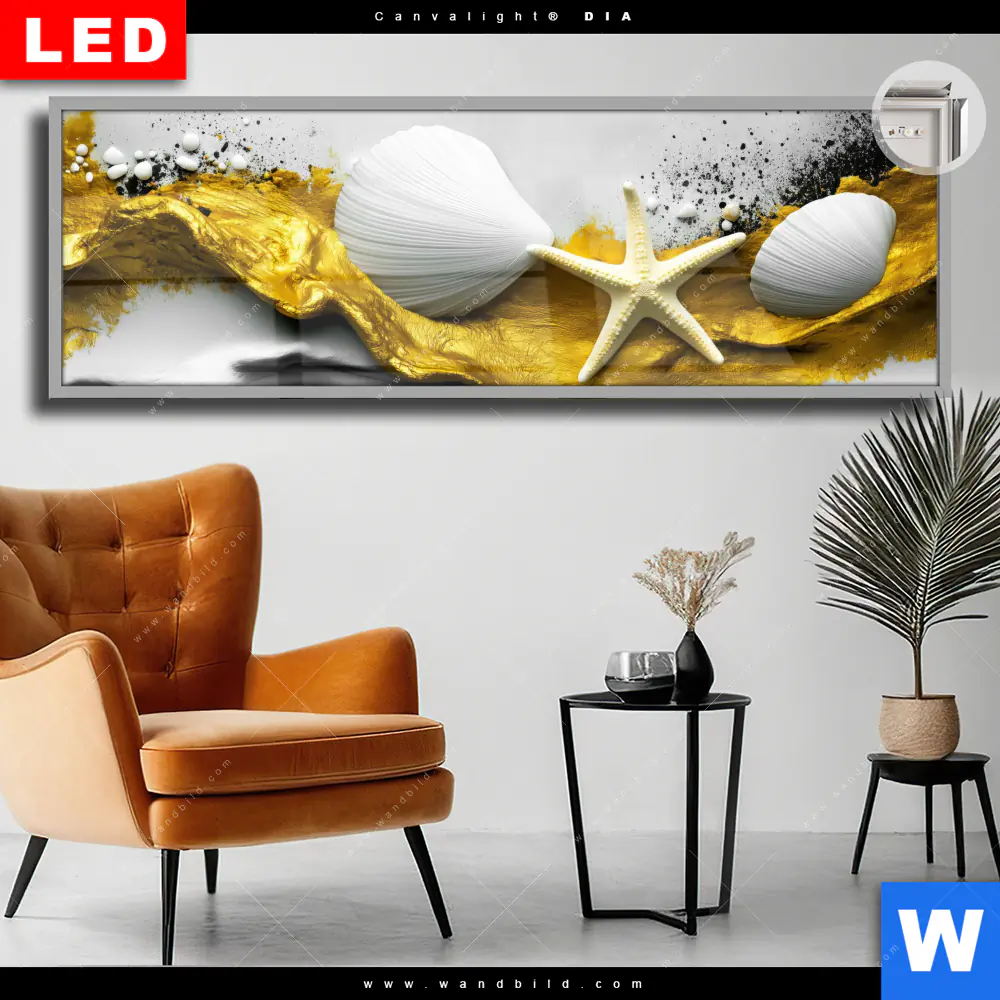 Canvalight® DIA Leuchtbild | Maritime Muschel-Kunst | Panorama