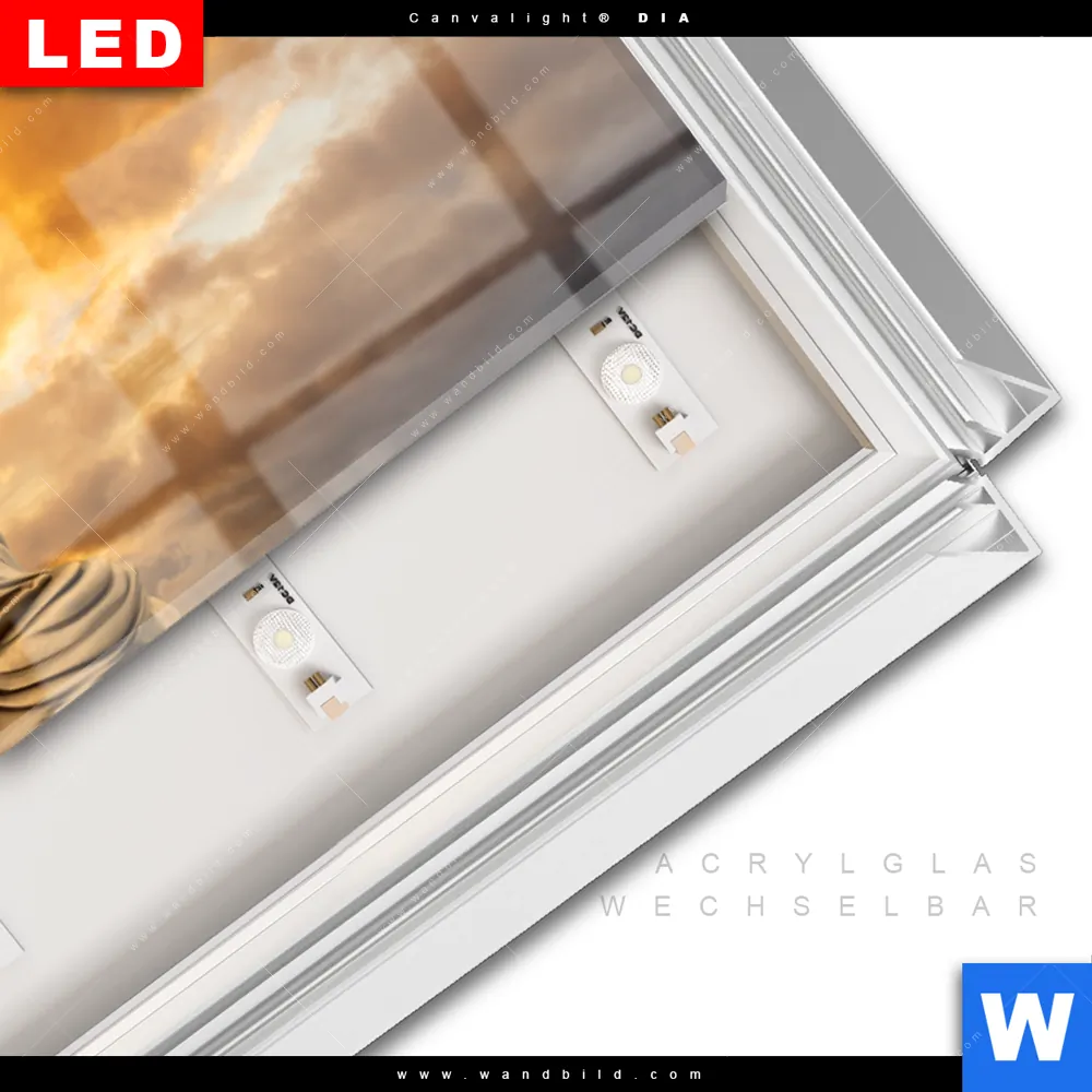 LED-Glasbild mit austauschbarem Acrylglas-Druck (Wechselbild)