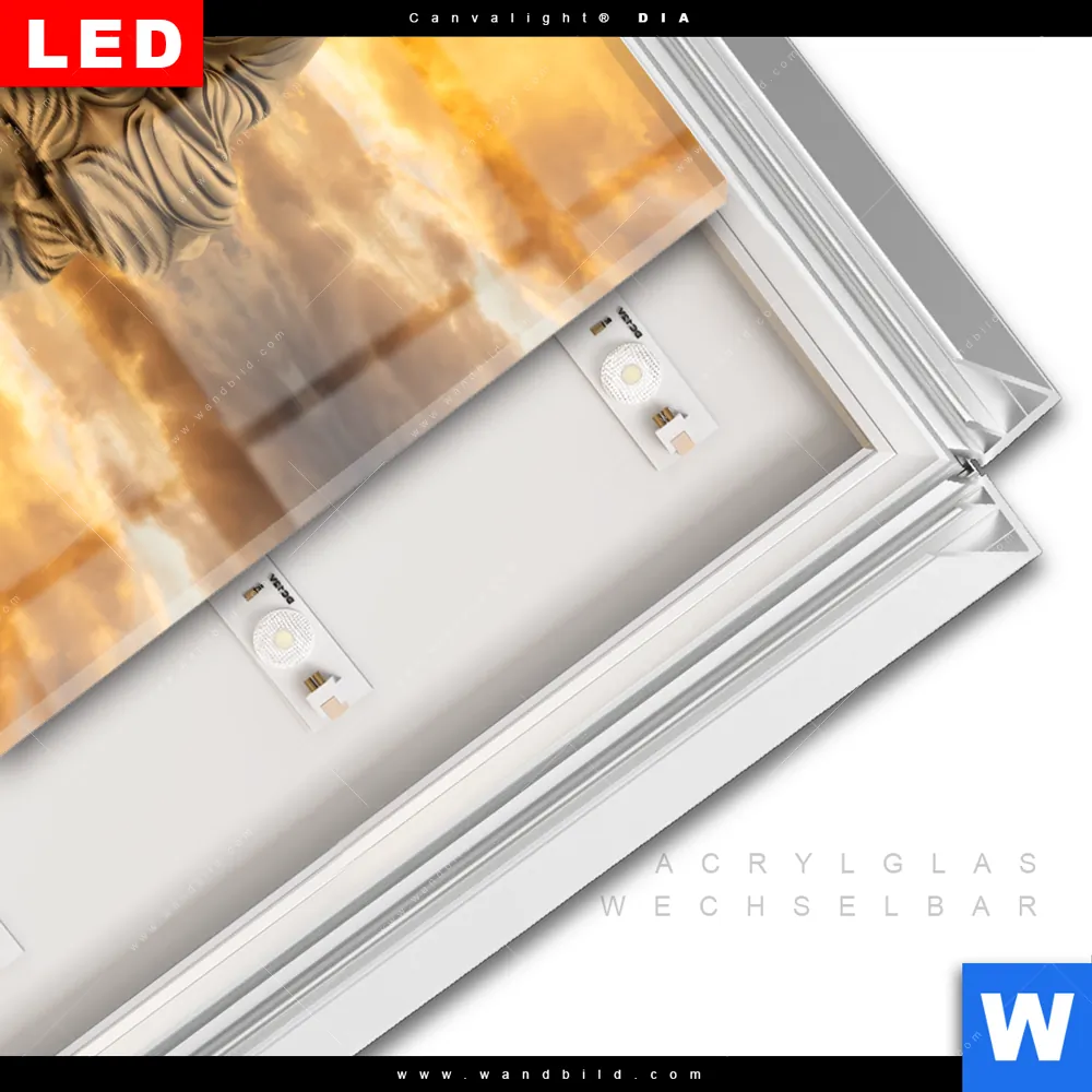 LED-Glasbild mit austauschbarem Acrylglas-Druck (Wechselbild)