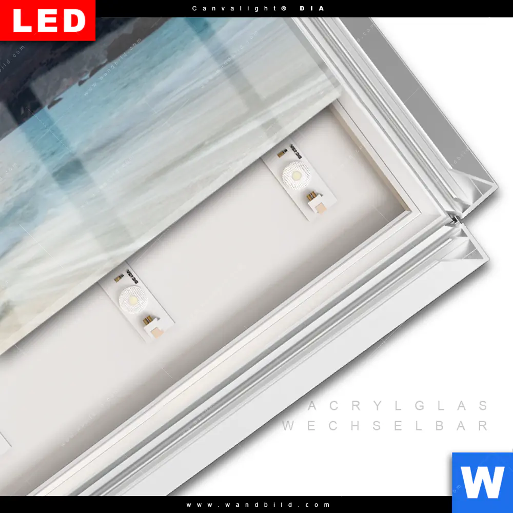LED-Glasbild mit austauschbarem Acrylglas-Druck (Wechselbild)