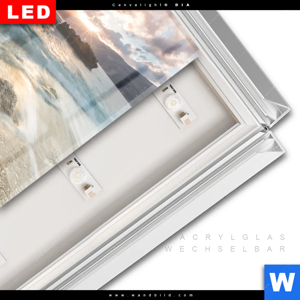 LED-Glasbild mit austauschbarem Acrylglas-Druck (Wechselbild)