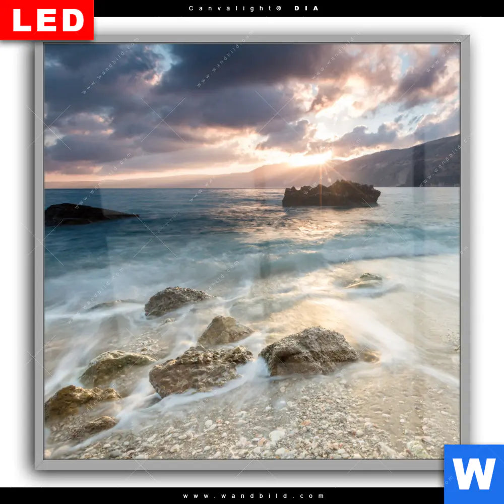 Canvalight® DIA Leuchtbild | Meeresrauschen bei Sonnenuntergang | Quadrat