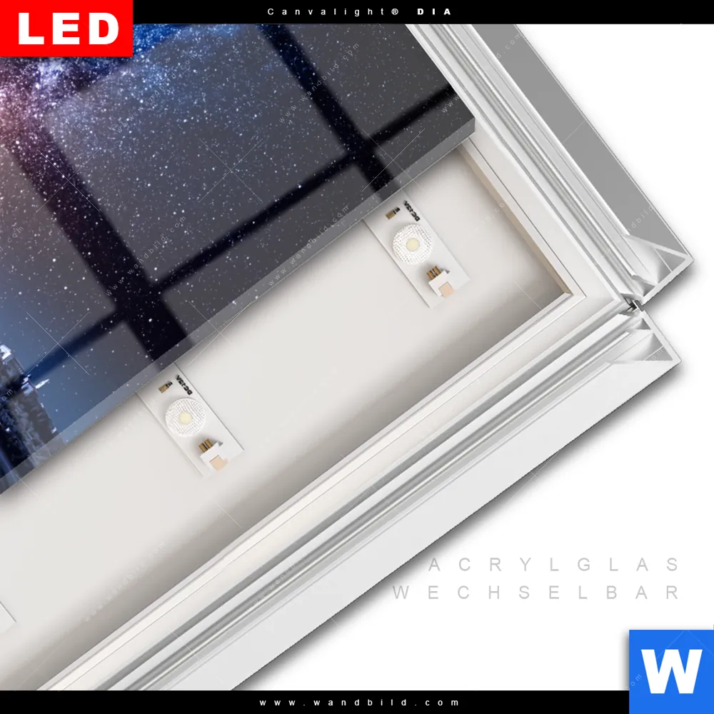 LED-Glasbild mit austauschbarem Acrylglas-Druck (Wechselbild)
