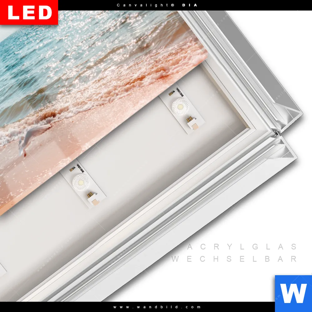 LED-Glasbild mit austauschbarem Acrylglas-Druck (Wechselbild)