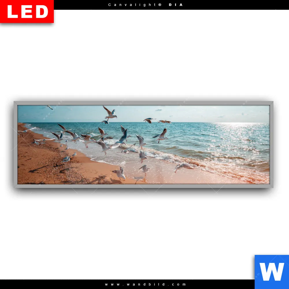 Canvalight® DIA Leuchtbild | Möwen am Strand | Panorama