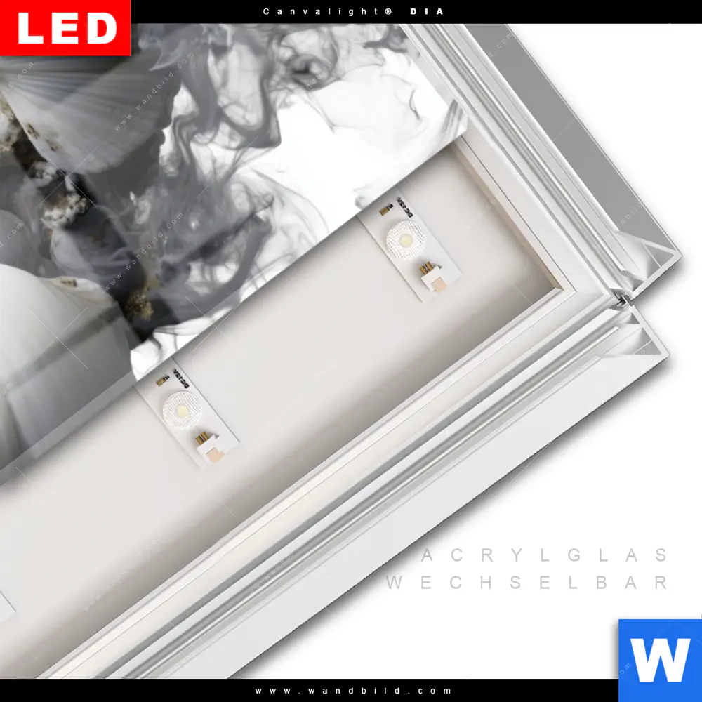 LED-Glasbild mit austauschbarem Acrylglas-Druck (Wechselbild)