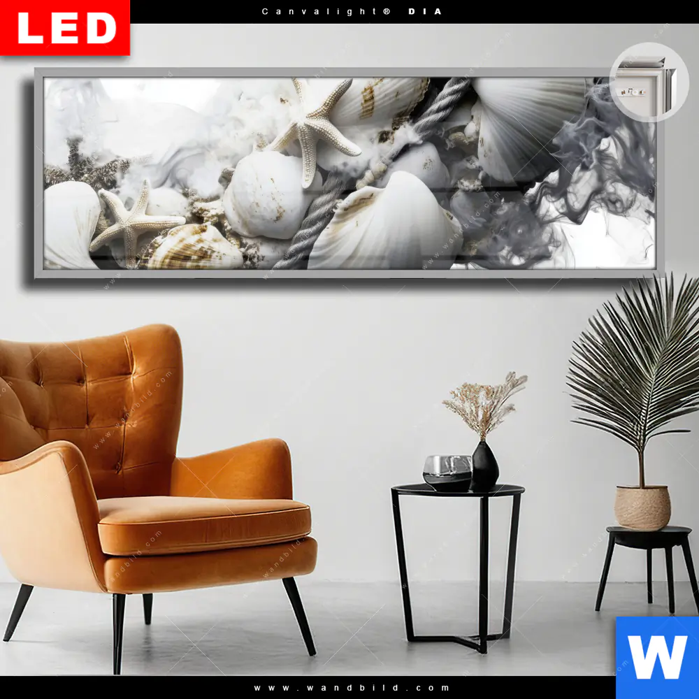 Canvalight® DIA Leuchtbild | Muscheln und Seesterne | Panorama