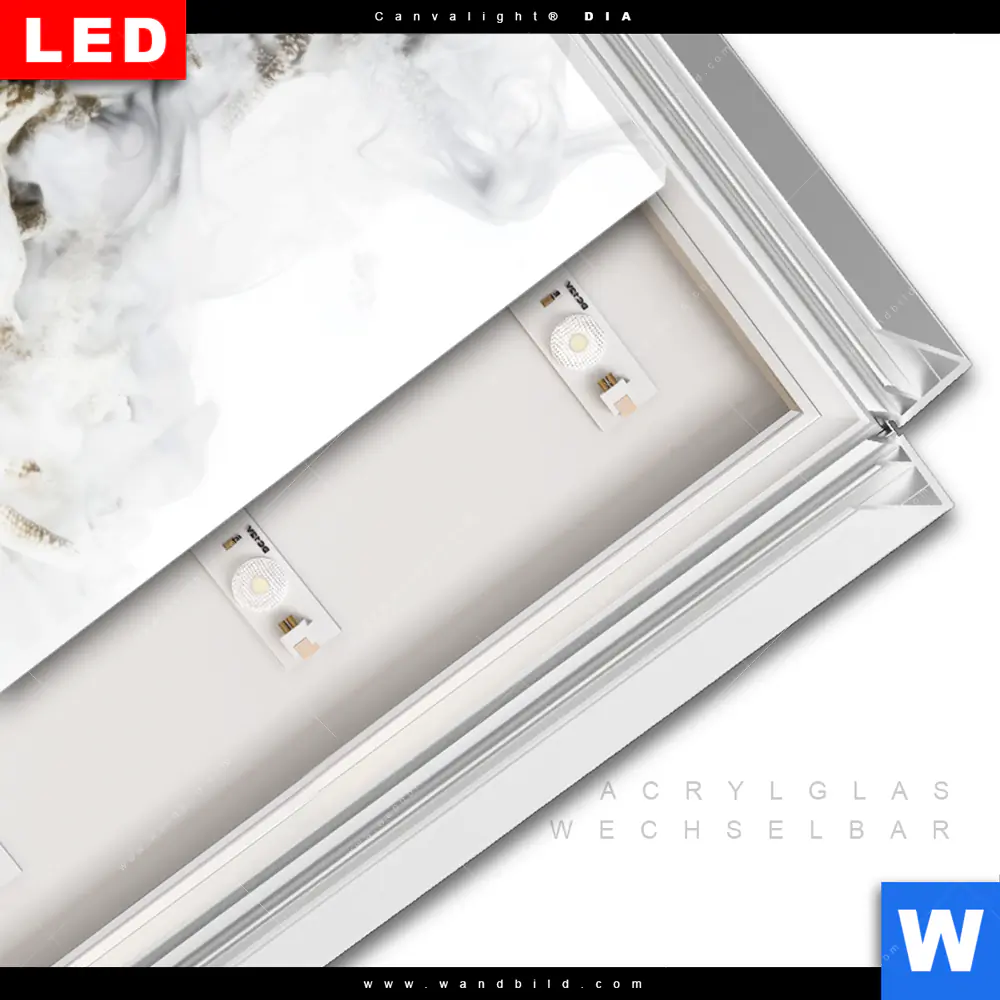 LED-Glasbild mit austauschbarem Acrylglas-Druck (Wechselbild)