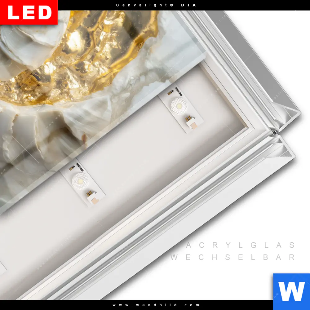 LED-Glasbild mit austauschbarem Acrylglas-Druck (Wechselbild)