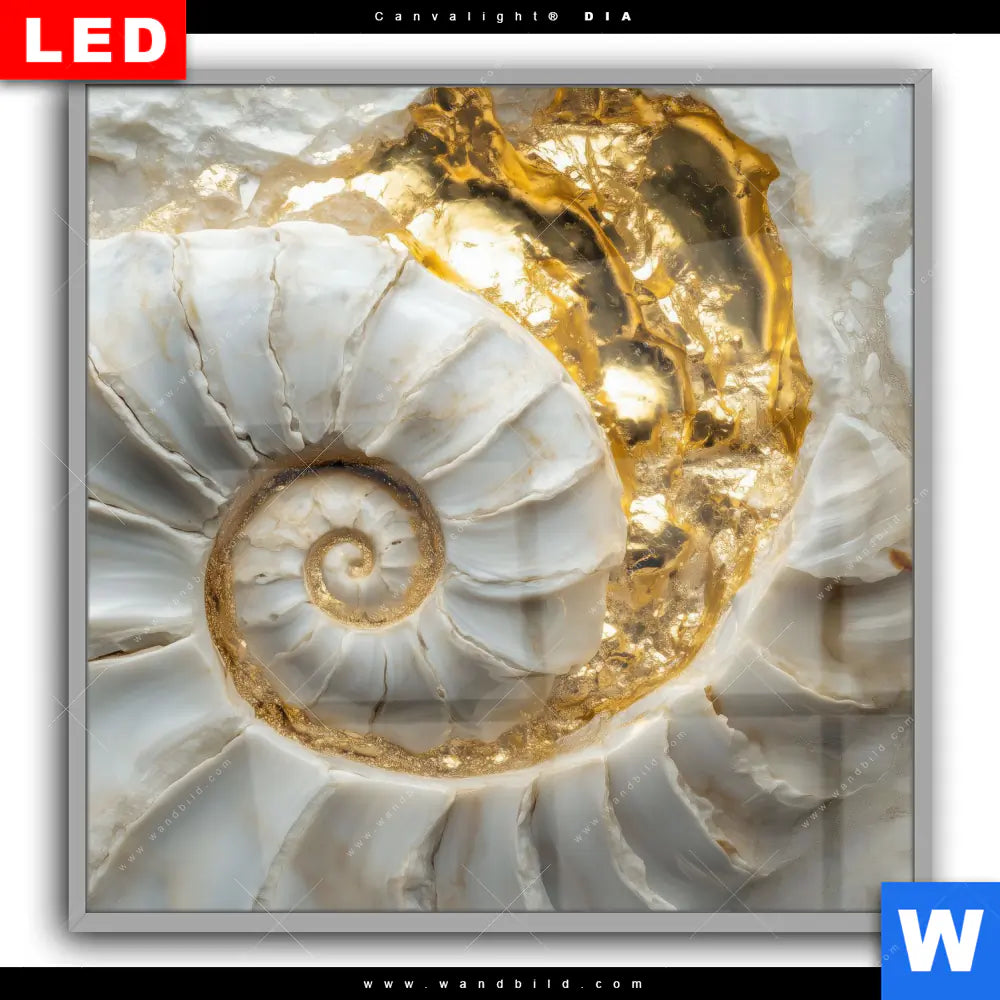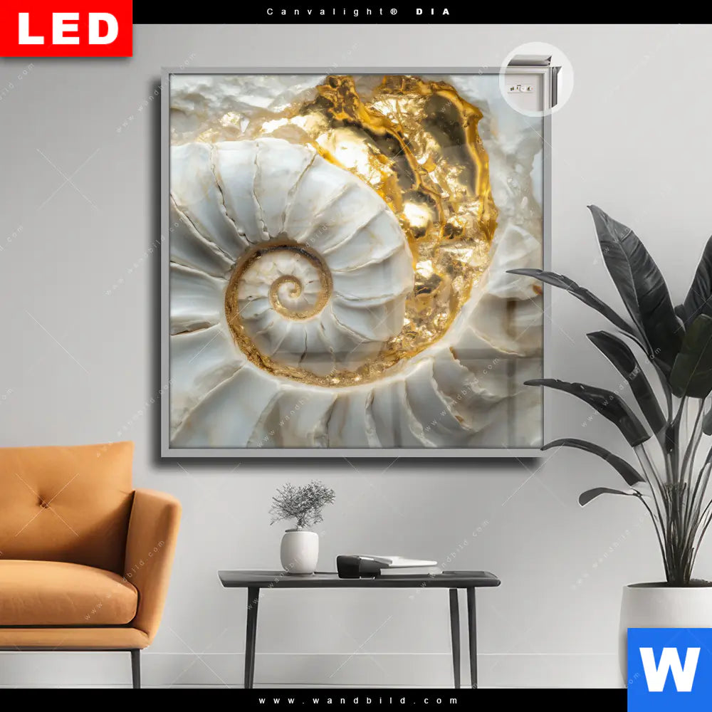 Canvalight® DIA Leuchtbild | Muschelspirale mit Gold | Quadrat