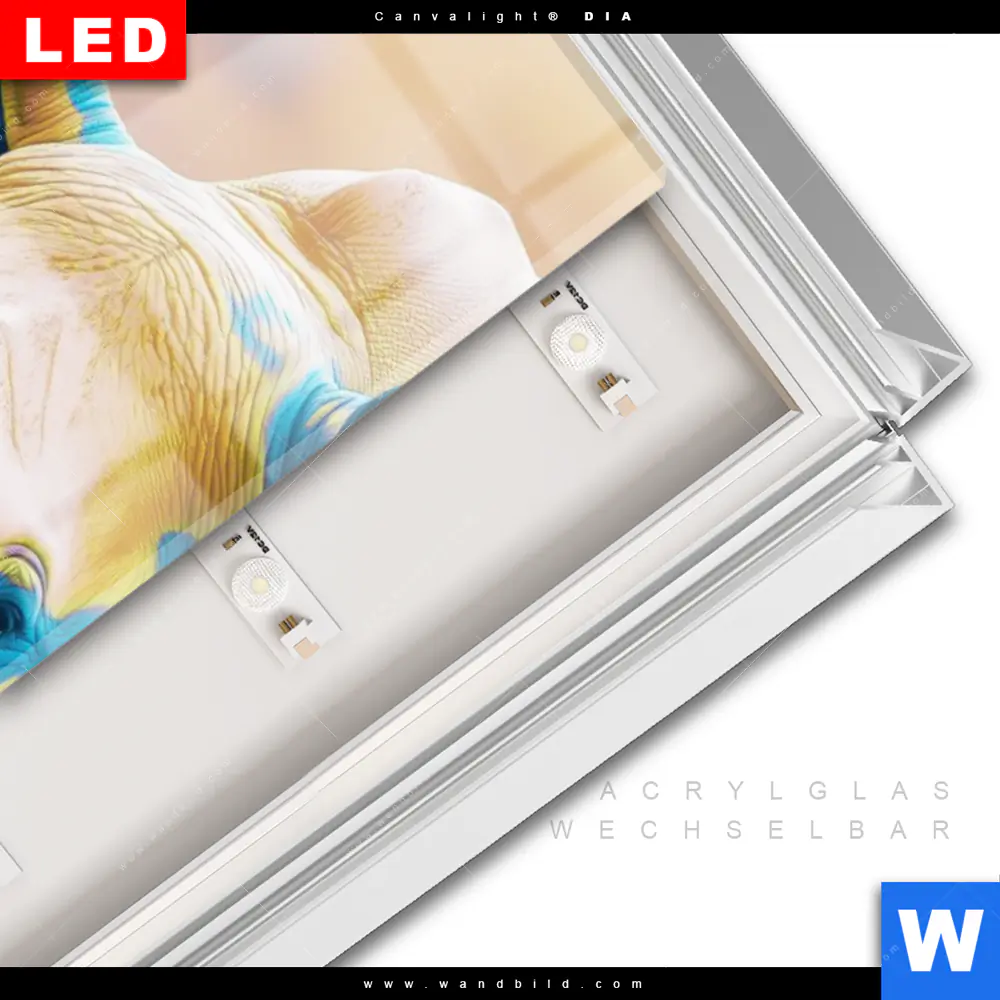 LED-Glasbild mit austauschbarem Acrylglas-Druck (Wechselbild)
