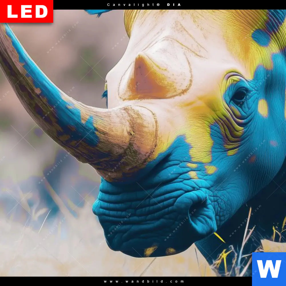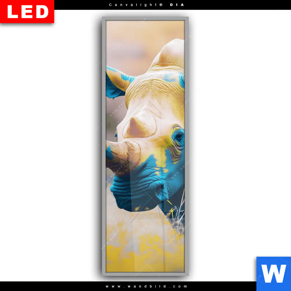 Canvalight® DIA Leuchtbild | Nashorn - Farben der Wildness | Schmal