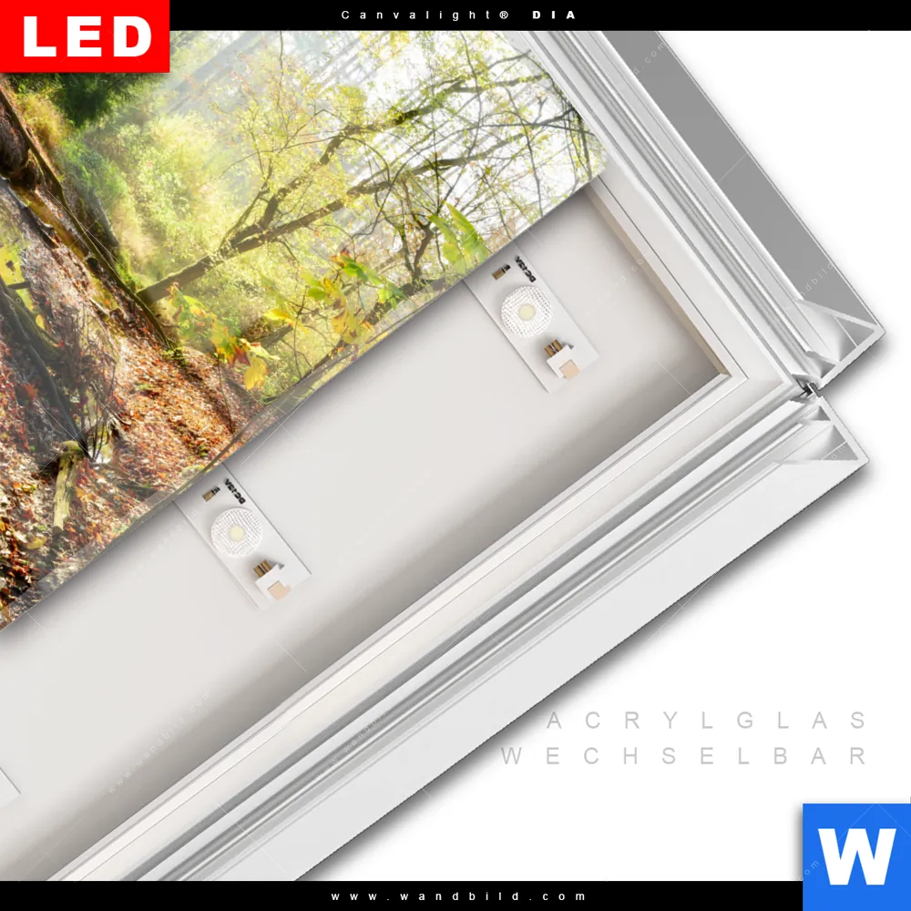 LED-Glasbild mit austauschbarem Acrylglas-Druck (Wechselbild)