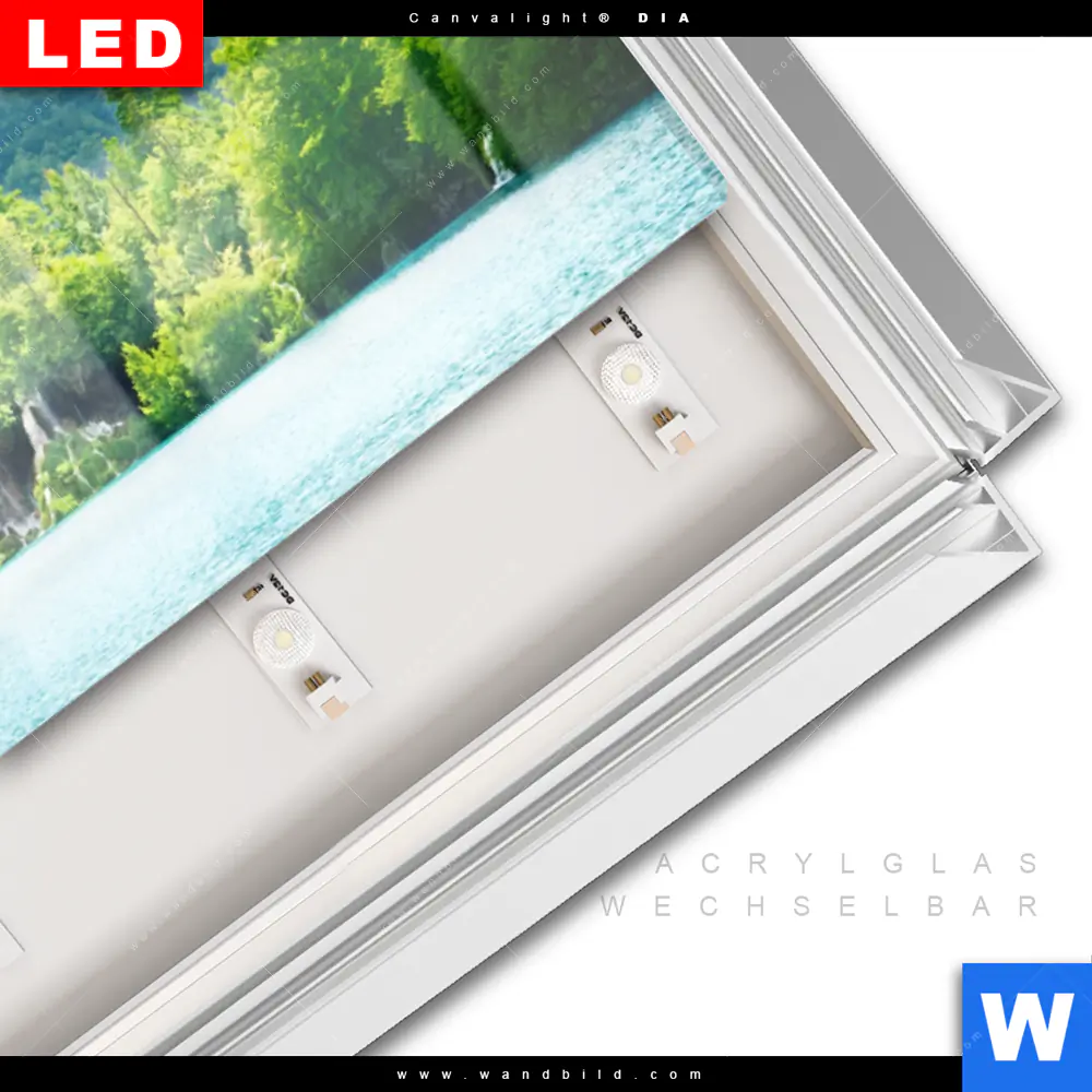 LED-Glasbild mit austauschbarem Acrylglas-Druck (Wechselbild)