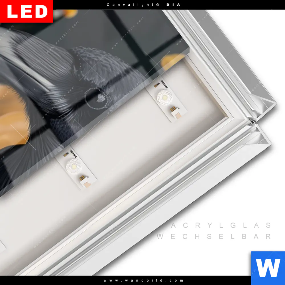 LED-Glasbild mit austauschbarem Acrylglas-Druck (Wechselbild)