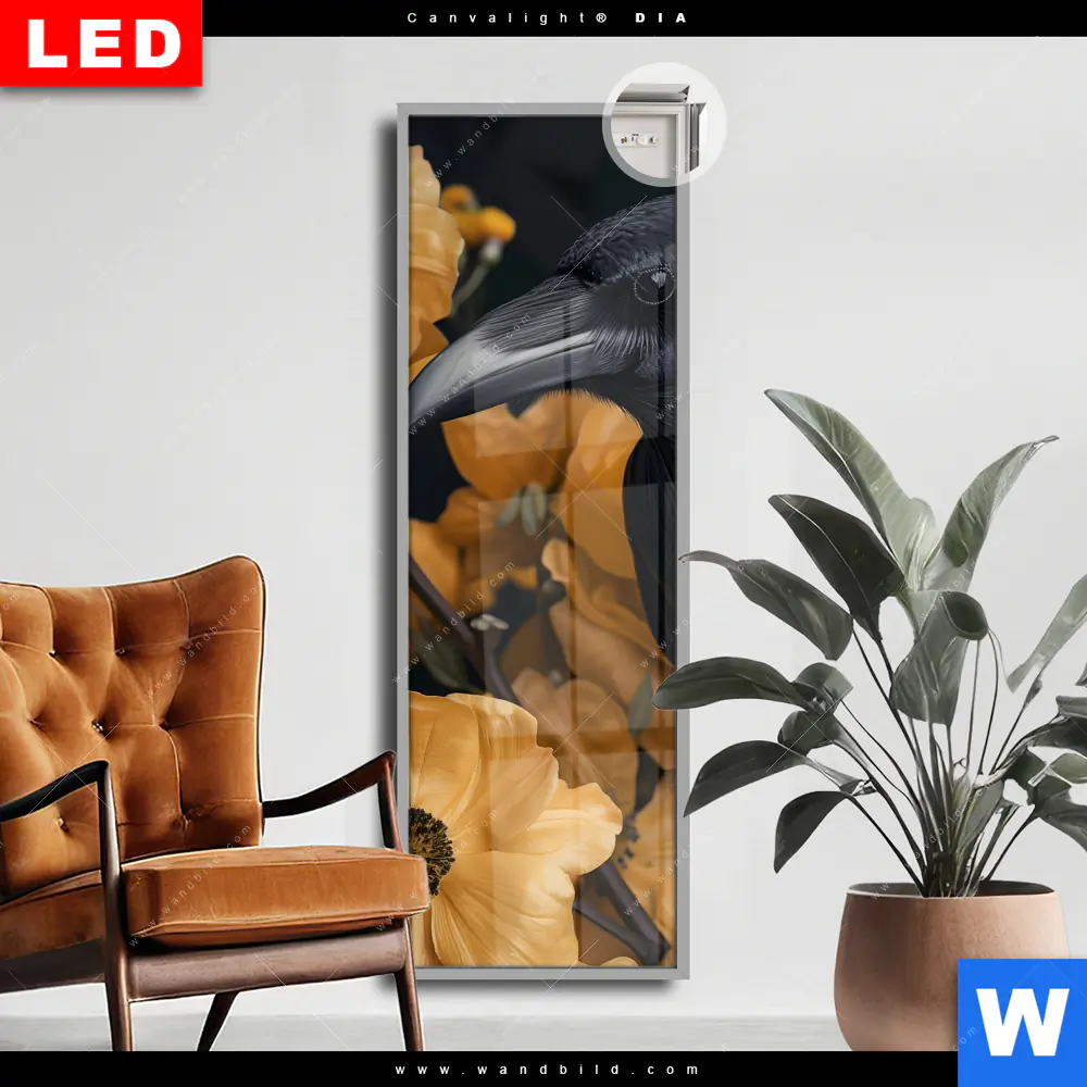 Canvalight® DIA Leuchtbild | Naturbild - Rabe & Blüten | Schmal