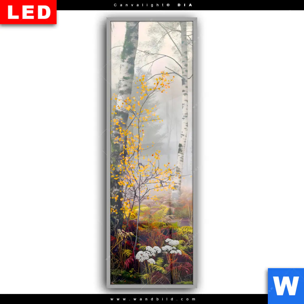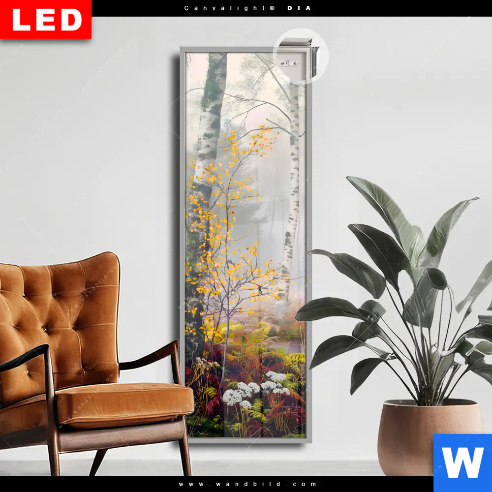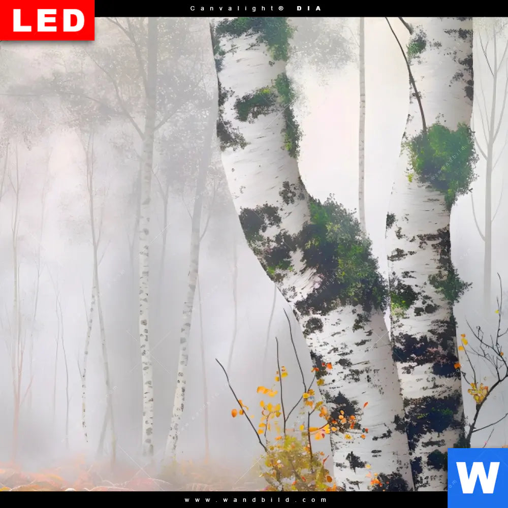 Canvalight® DIA Leuchtbild | Naturidylle - Birken im Nebel | Schmal