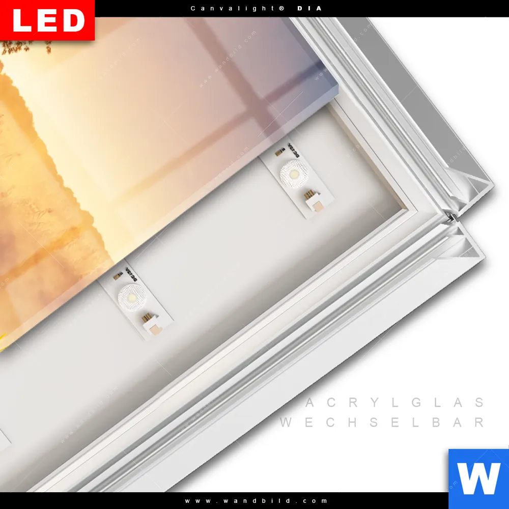 LED-Glasbild mit austauschbarem Acrylglas-Druck (Wechselbild)