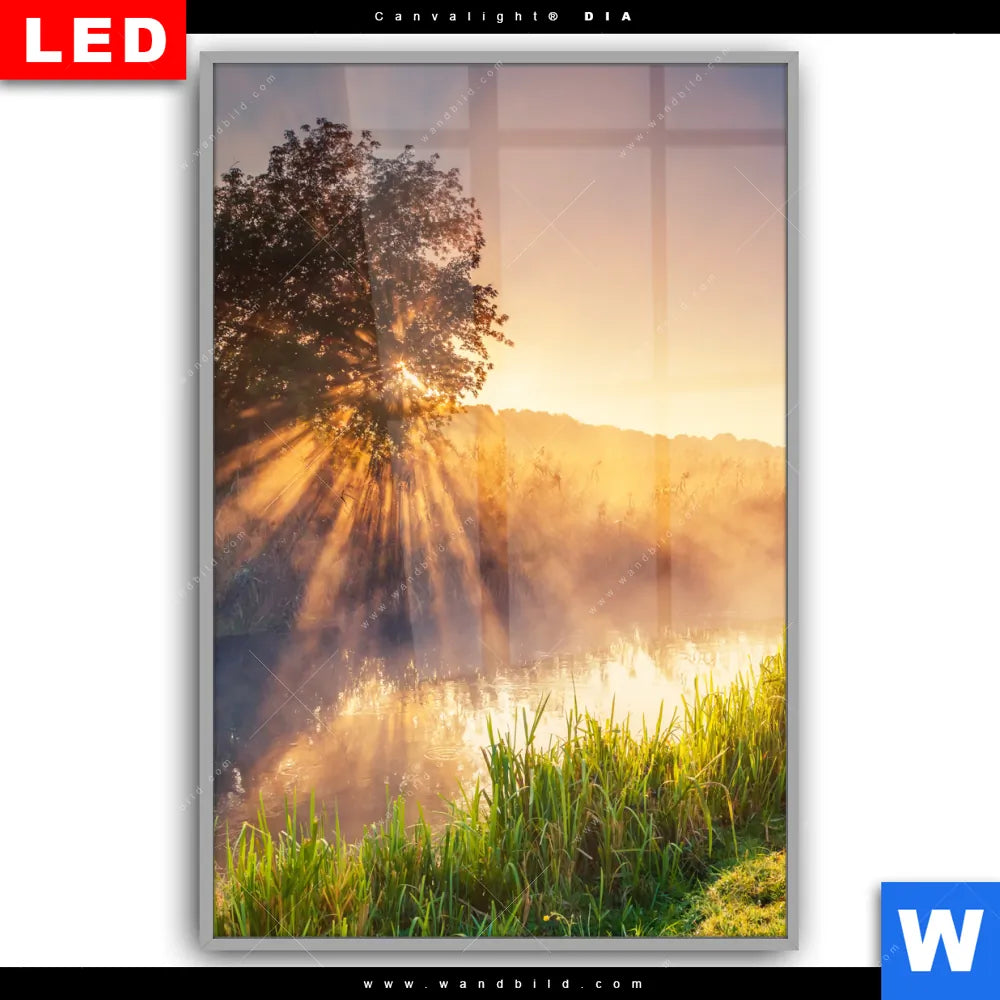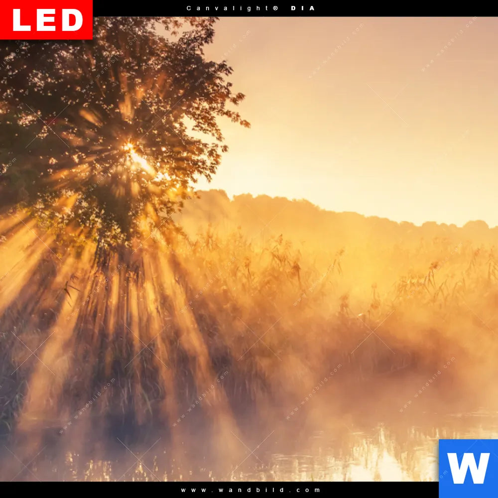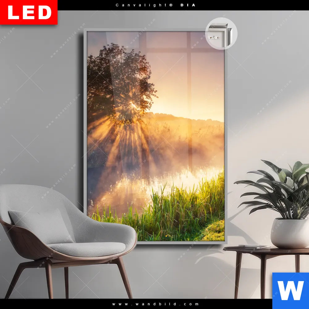 Canvalight® DIA Leuchtbild | Nebel am Fluss | Hochformat