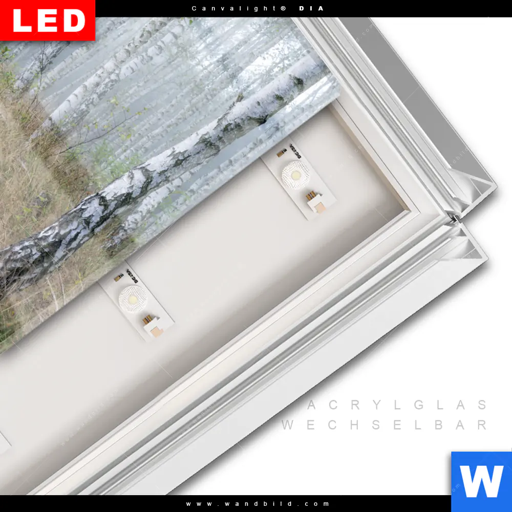 LED-Glasbild mit austauschbarem Acrylglas-Druck (Wechselbild)