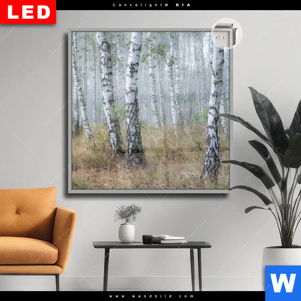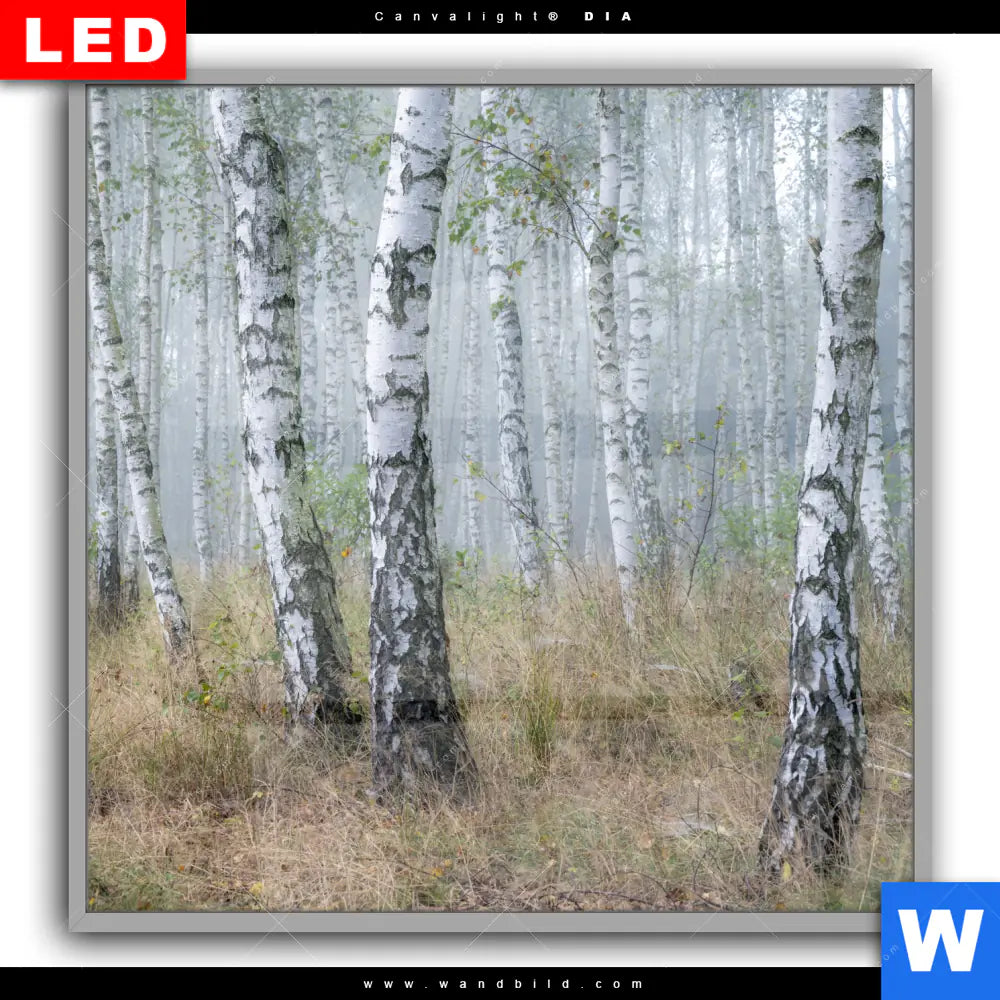 Canvalight® DIA Leuchtbild | Nebliger Morgen im Birkenwald | Quadrat