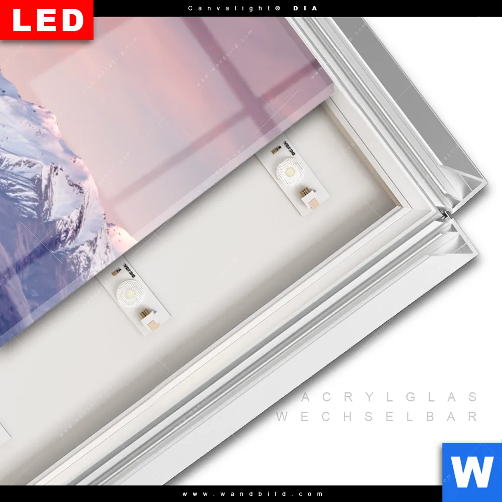 LED-Glasbild mit austauschbarem Acrylglas-Druck (Wechselbild)