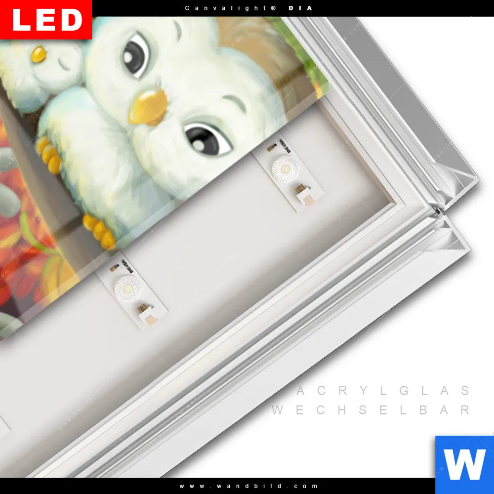 LED-Glasbild mit austauschbarem Acrylglas-Druck (Wechselbild)