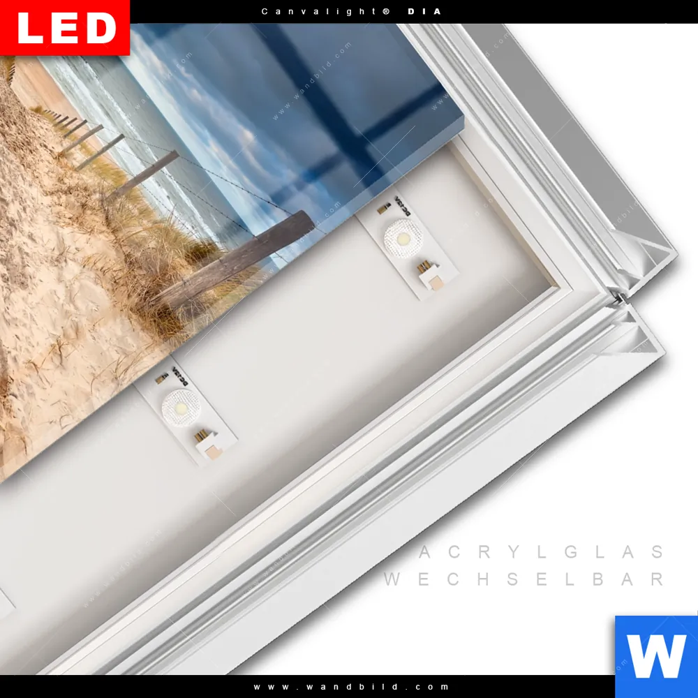 LED-Glasbild mit austauschbarem Acrylglas-Druck (Wechselbild)