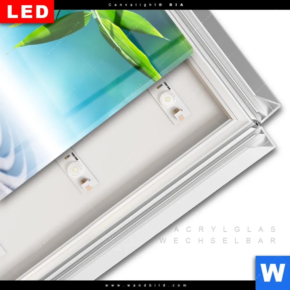 LED-Glasbild mit austauschbarem Acrylglas-Druck (Wechselbild)