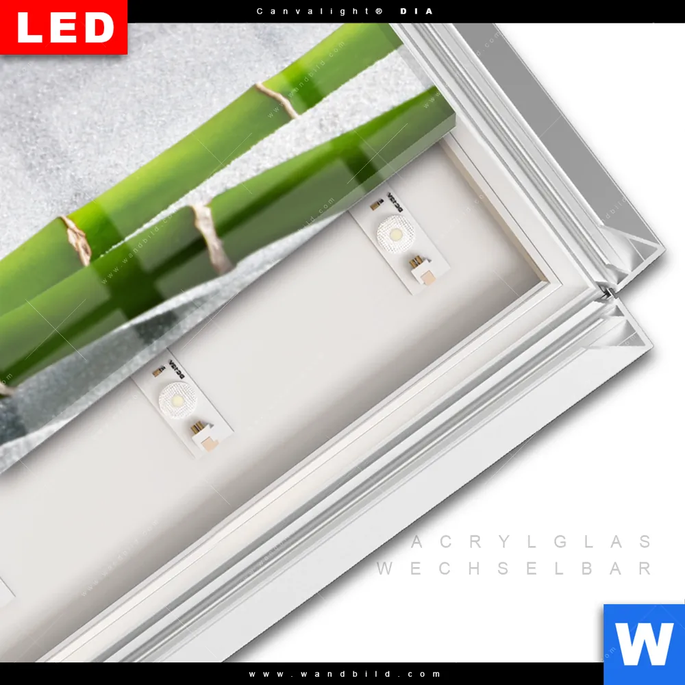 LED-Glasbild mit austauschbarem Acrylglas-Druck (Wechselbild)
