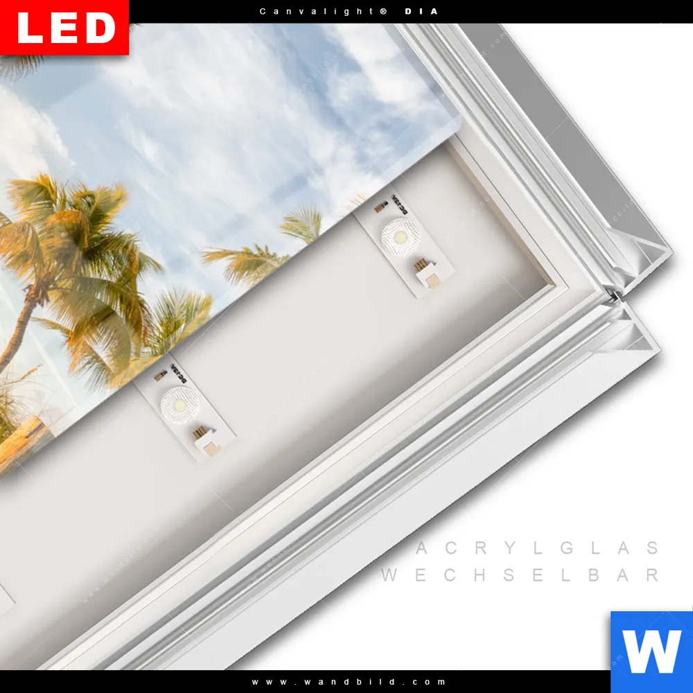 LED-Glasbild mit austauschbarem Acrylglas-Druck (Wechselbild)