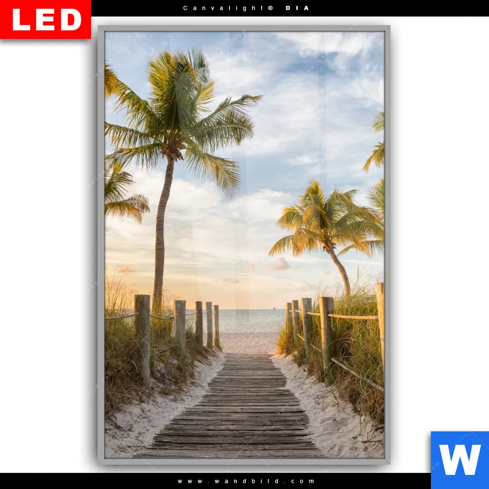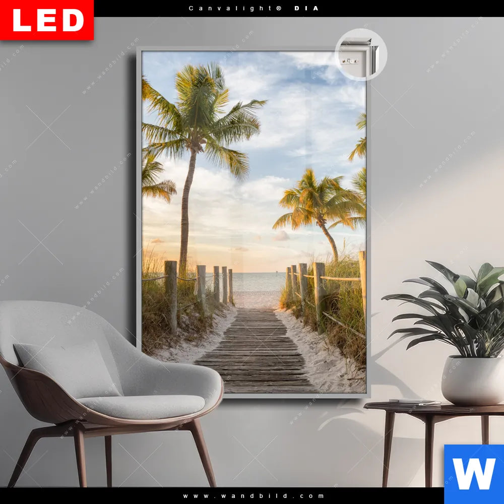Canvalight® DIA Leuchtbild | Palmen am Strandweg | Hochformat