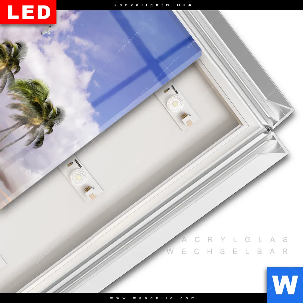 LED-Glasbild mit austauschbarem Acrylglas-Druck (Wechselbild)