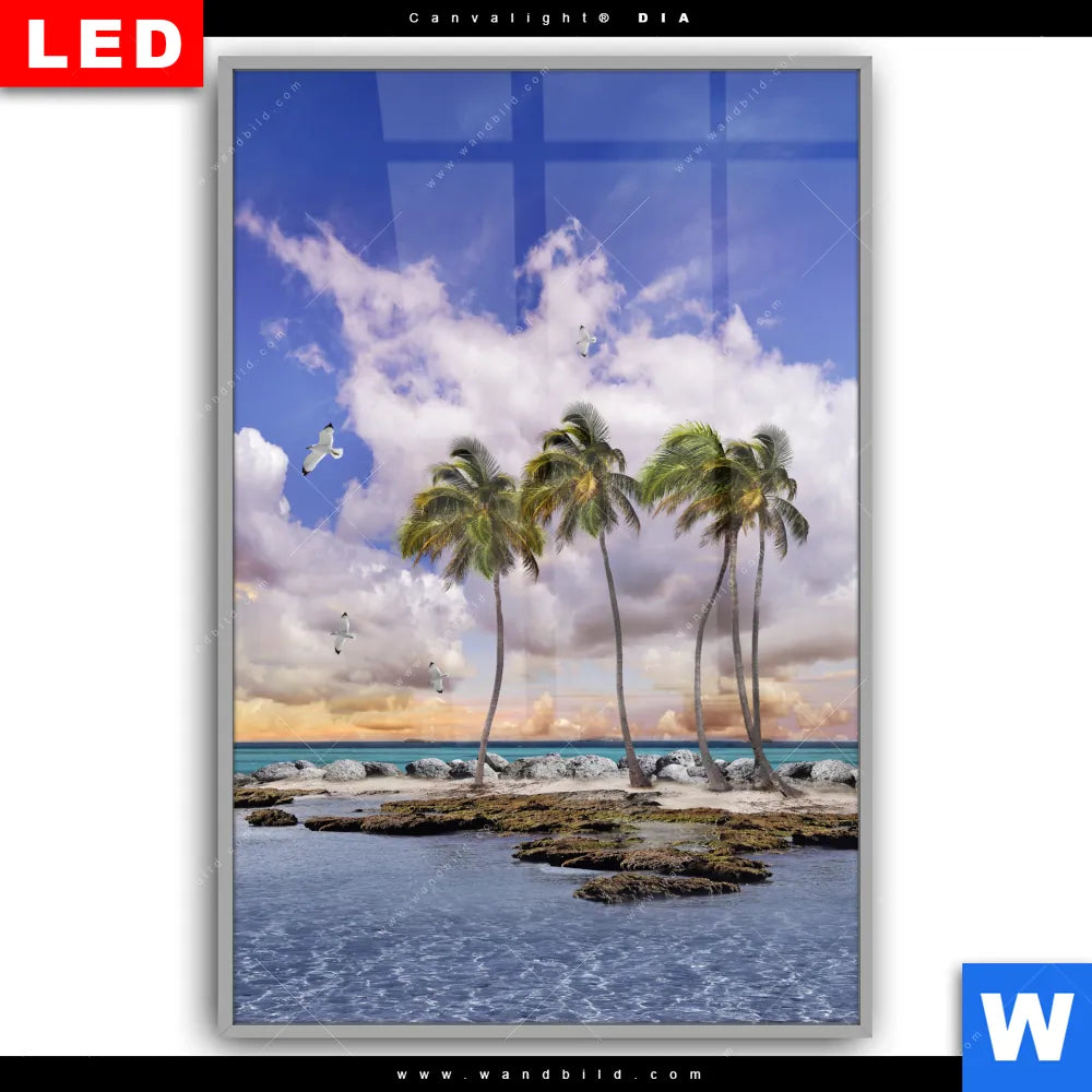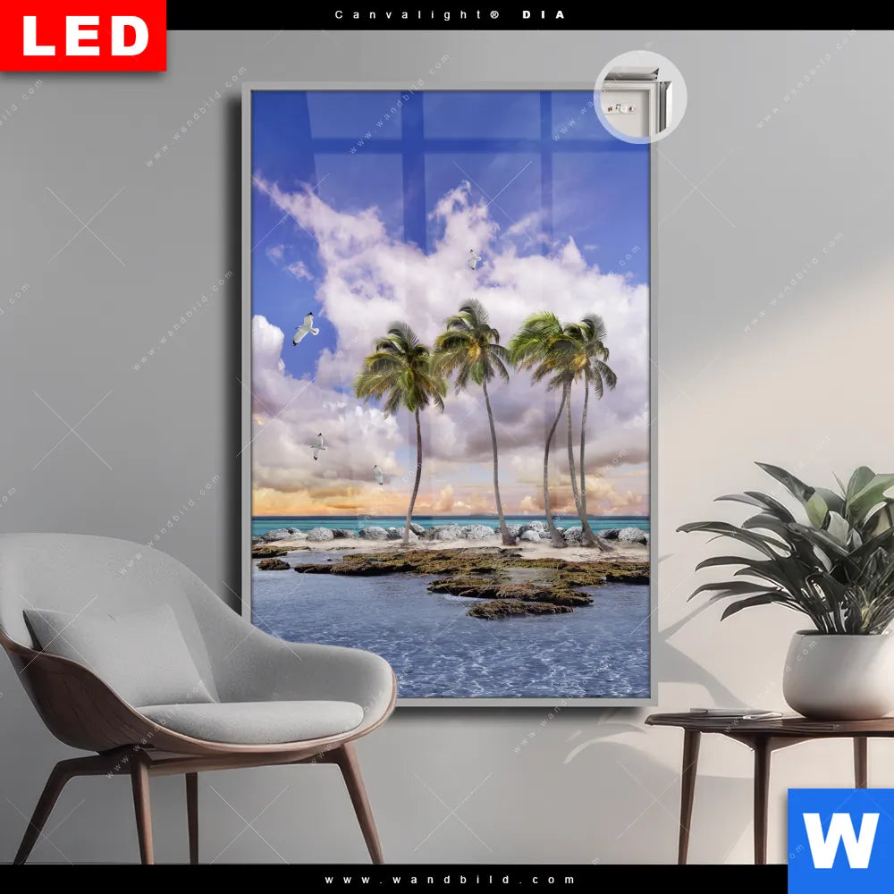 Leuchtbild Acrylglas Canvalight® DIA | Palmen auf Insel | Hochformat