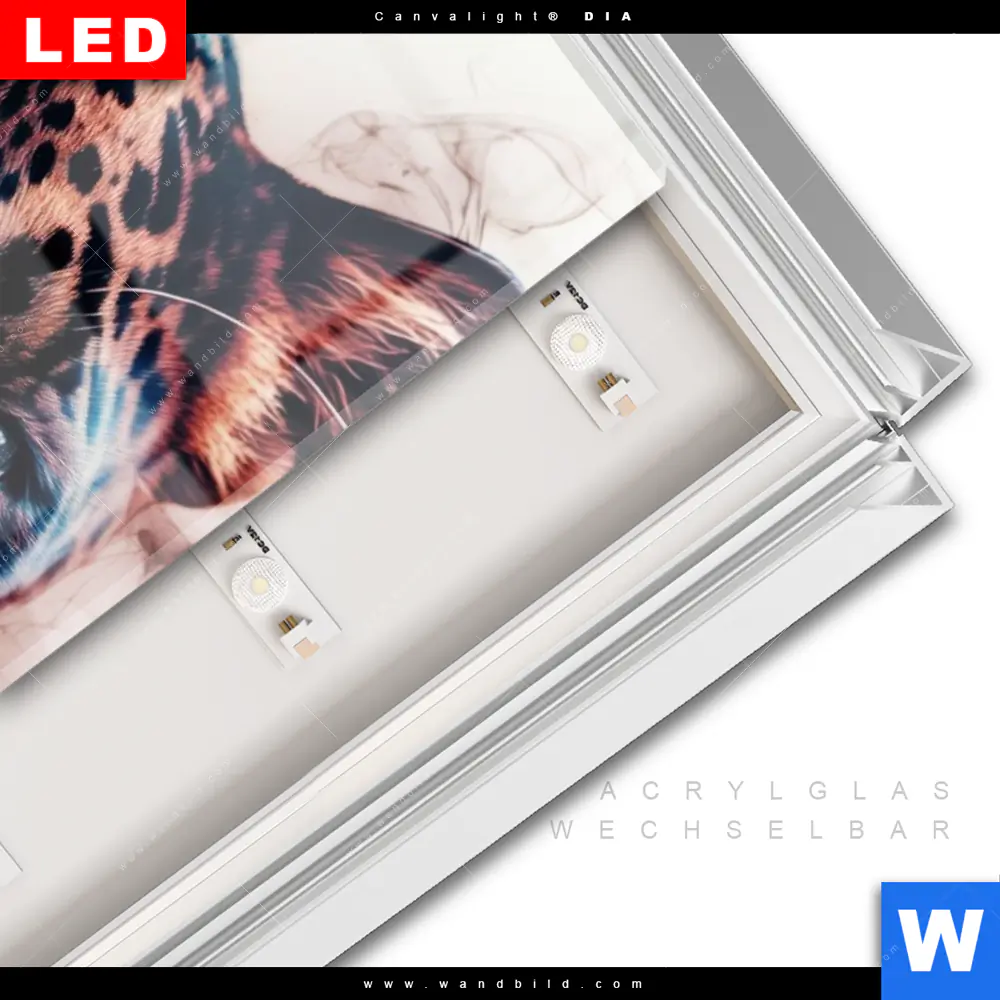 LED-Glasbild mit austauschbarem Acrylglas-Druck (Wechselbild)