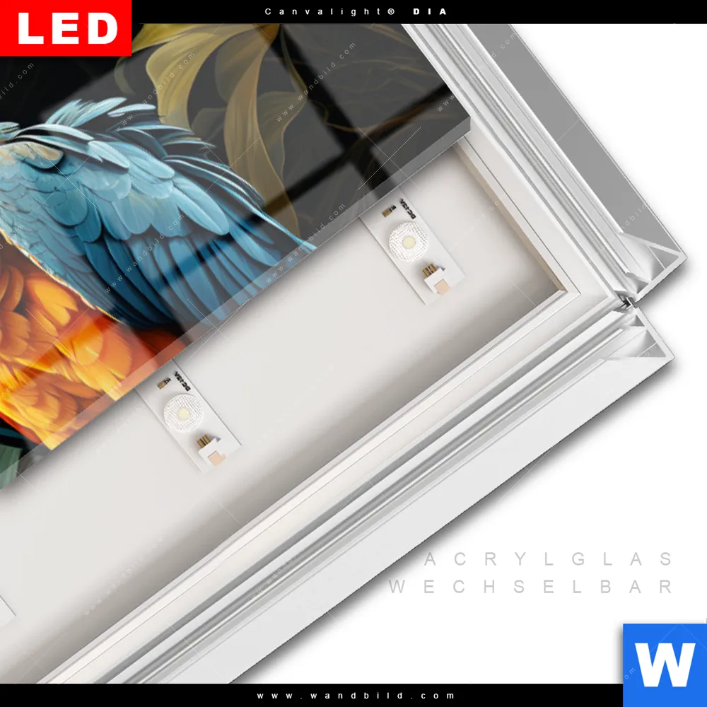 LED-Glasbild mit austauschbarem Acrylglas-Druck (Wechselbild)