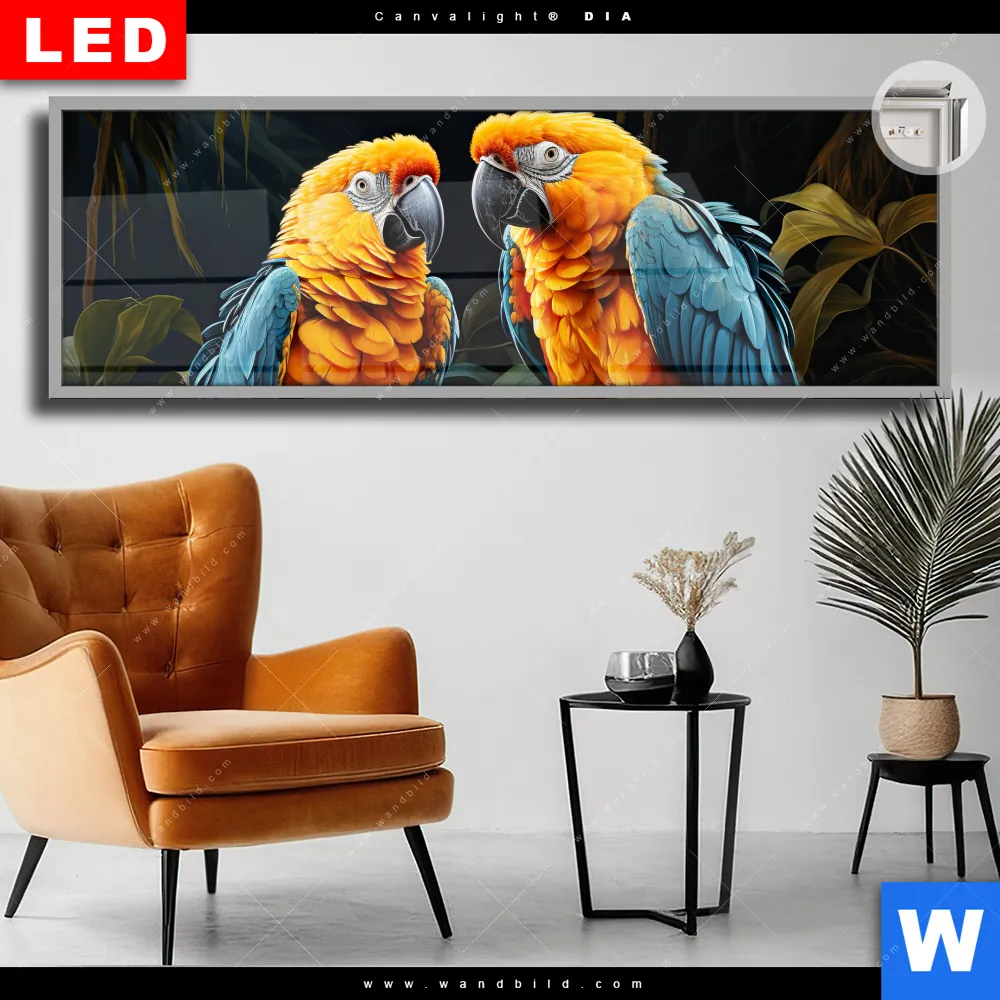 Canvalight® DIA Leuchtbild | Papageien auf einem Ast | Panorama