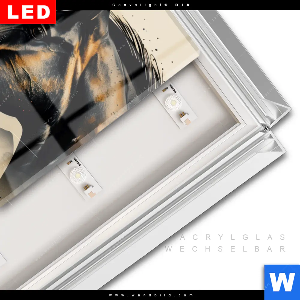 LED-Glasbild mit austauschbarem Acrylglas-Druck (Wechselbild)