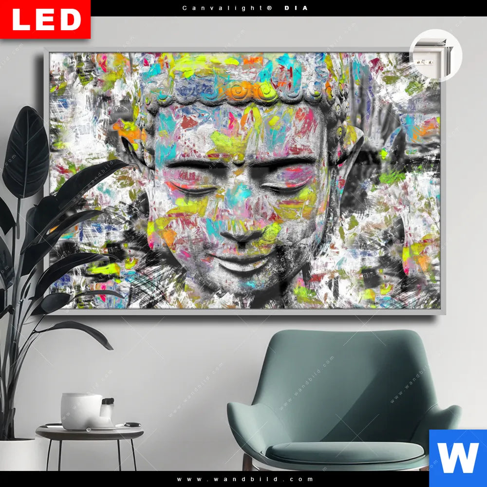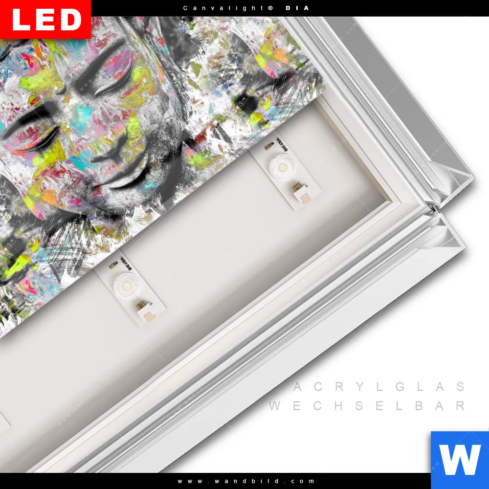 Canvalight® DIA Leuchtbild | Pop Art Buddha Kopf | Querformat