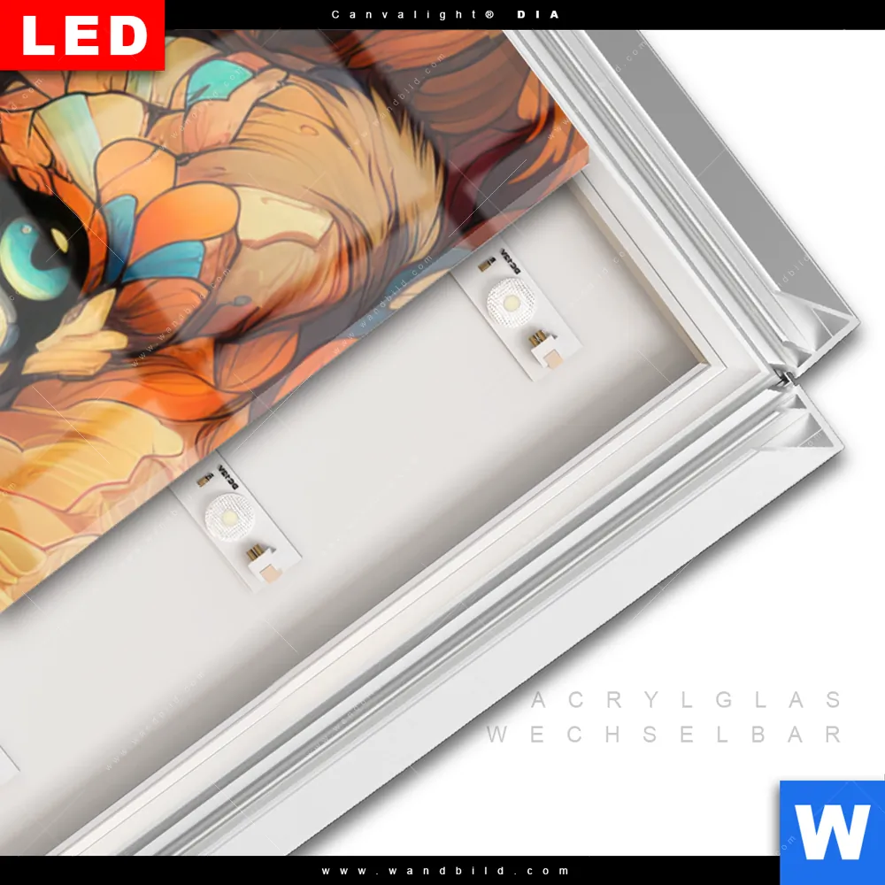 LED-Glasbild mit austauschbarem Acrylglas-Druck (Wechselbild)