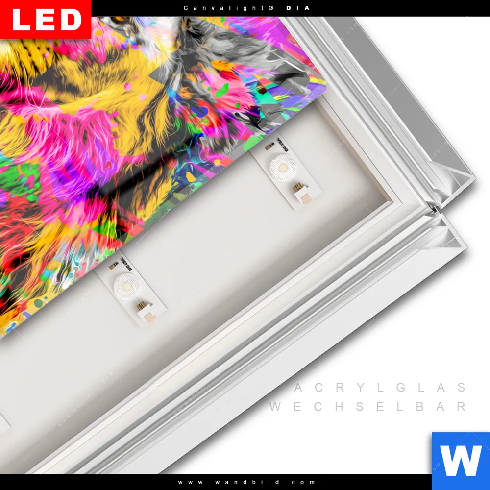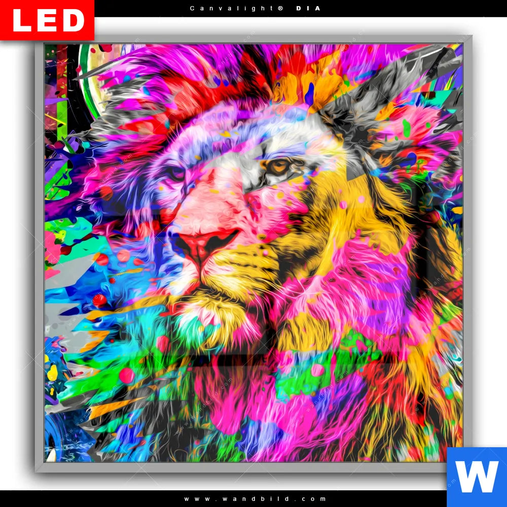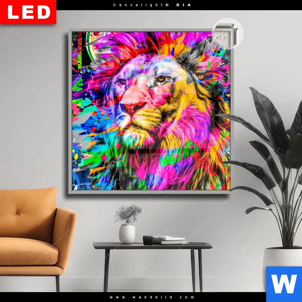 Canvalight® DIA Leuchtbild | Pop Art Löwe | Quadrat