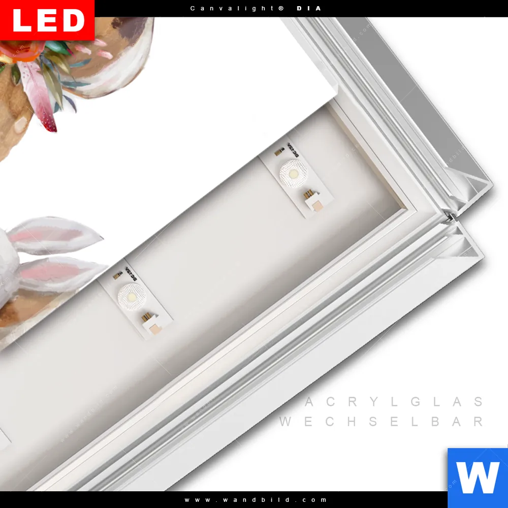LED-Glasbild mit austauschbarem Acrylglas-Druck (Wechselbild)